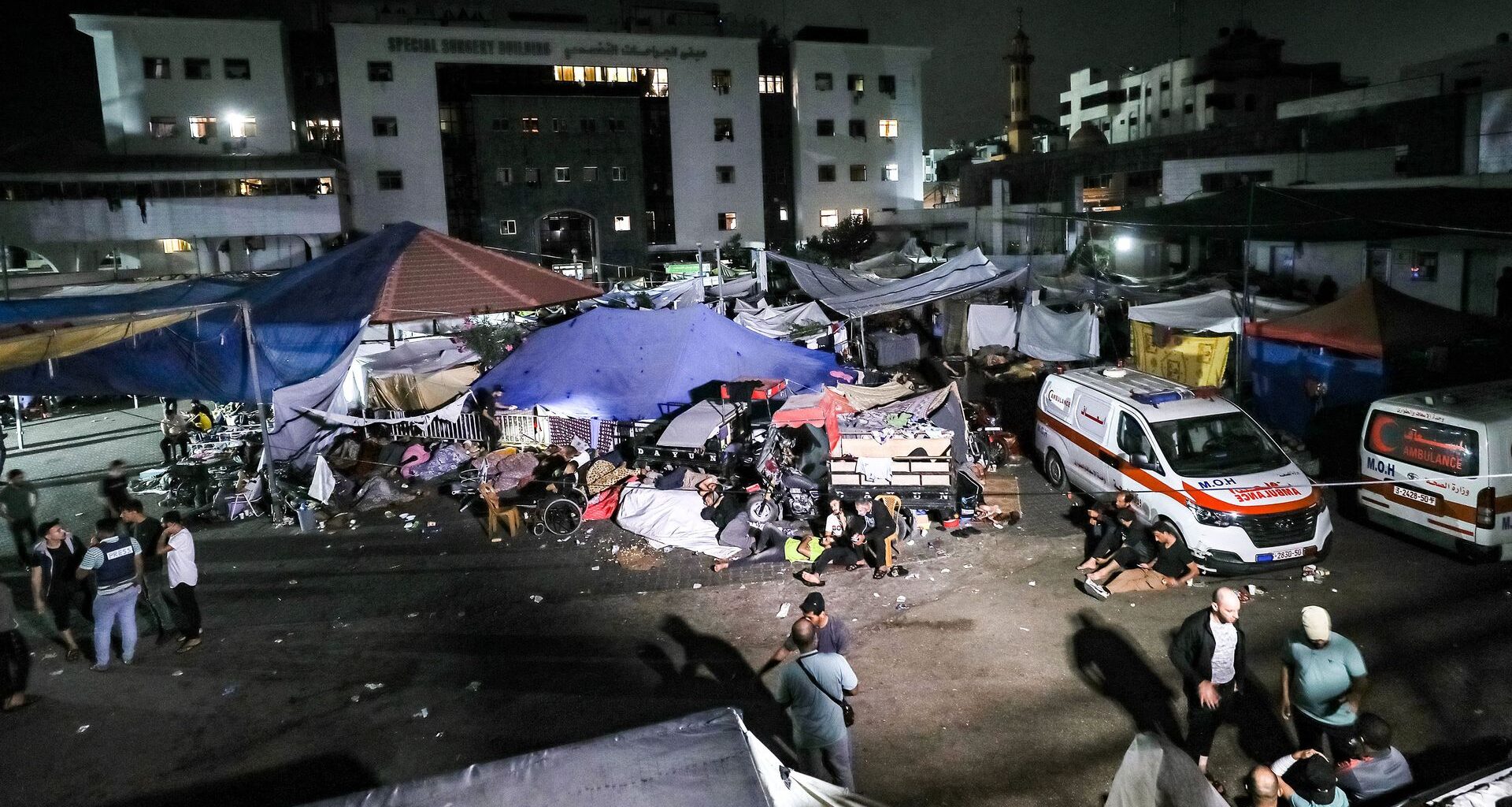 دفن الجثث داخل المجمع الطبي: وقال مدير المستشفى محمد أبو سلمية لفرانس برس الثلاثاء أن “179 جثة” على الأقل دفنت في “قبر جماعي” في باحة المجمع، موضحا أن بينهم سبعة أطفال خدج توفوا جراء انقطاع الكهرباء.